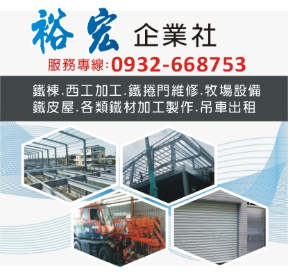 裕宏企業社 - 台中鋼構工程、鐵棟、西工加工、鐵皮屋、鐵捲門維修